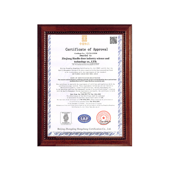 公司一直以來嚴格執(zhí)行ISO9001質(zhì)量體系和ISO14001環(huán)境管理體系標(biāo)準(zhǔn),建立了完備的科研、開發(fā)、生產(chǎn)、銷售服務(wù)體系。公司是浙江省門業(yè)協(xié)會會員單位,江山門業(yè)協(xié)會理事單位,中國木材與木制品流通協(xié)會會員單位,江山市消防協(xié)會副會長單位。